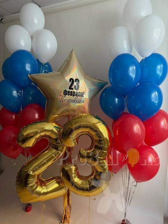 23 февраля главный праздник для мужчин всех возрастов . Композиция из шаров порадует любимого мужчину или же начальника, коллегу по работе, родственника или же друга 🚀