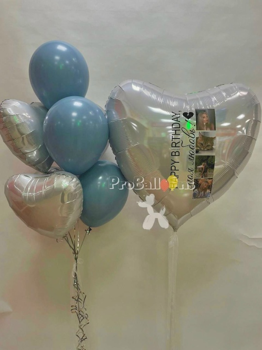 Шарики на день рождения порадуют именинника и создадут атмосферу праздника ☺️🎈 В набор входит: -фонтанчик из 7 шаров (3 шара пастель, 2 хром, 1 фольгированных сердца) -гигантское сердце с индивидуальной надписью и фото Даем гарантию на полёт гелиевых шаров от 3 дней, как правило шарики летают намного дольше 😃 Так же у нас работает доставка по городу и области. Количество и цвет шаров можно изменить по вашему желанию 🤗