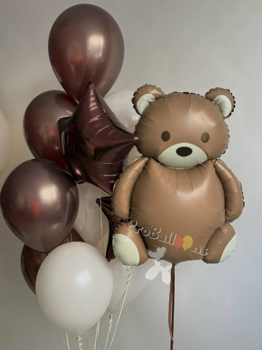 Шары на день рождения порадуют именинника и создадут атмосферу праздника ✨🤍 В набор входит: -мишка на грузике -фонтанчик из 8 шаров пастель, 2 фольгированных звезды Даем гарантию на полёт гелиевых шаров от 3 дней, как правило шарики летают намного дольше 😃 Так же у нас работает доставка по городу и области. Количество и цвет шаров можно изменить по вашему желанию 🤗