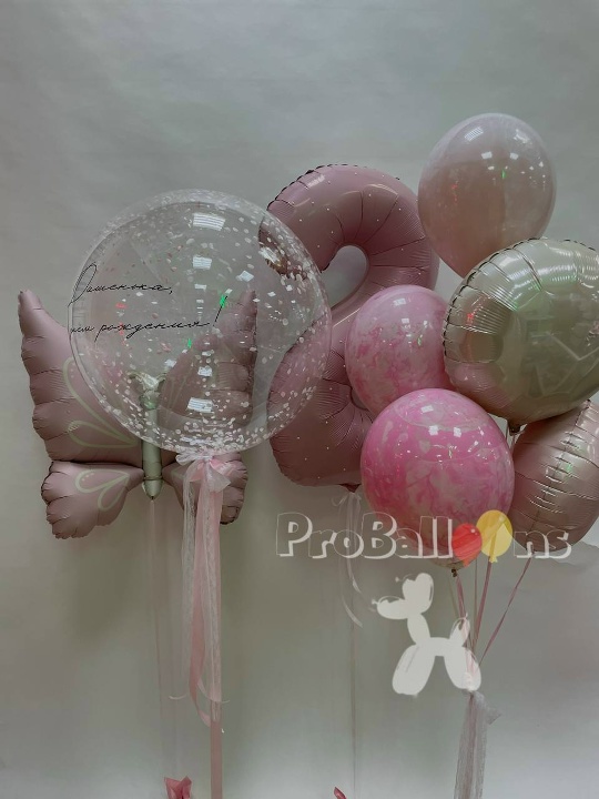 Шары на день рождения порадуют именинника и создадут атмосферу праздника ☺️🎈 В набор входит : -фольгированная бабочка -цифра с декором в виде бусинок -баблс с гортензией и индивидуальной надписью -фонтанчик из 7 шаров (2 фольгированных круга, 5 зеркальных шаров с краской) Даем гарантию на полёт гелиевых шаров от 3 дней, как правило шарики летают намного дольше 😃 Так же у нас работает доставка по городу и области. Количество и цвет шаров можно изменить по вашему желанию 🤗